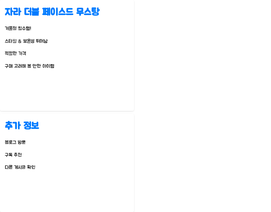 오늘 알아본 자라 더블 페이스드 무스탕, 어떠셨나요? 스타일과 보온성, 가격까지 모두 만족시키는 매력적인 아이템이죠? 이 글이 도움이 되셨으면 좋겠네요! 더 많은 패션 정보를 원하신다면 블로그 구독과 다른 게시글 방문을 추천드립니다!