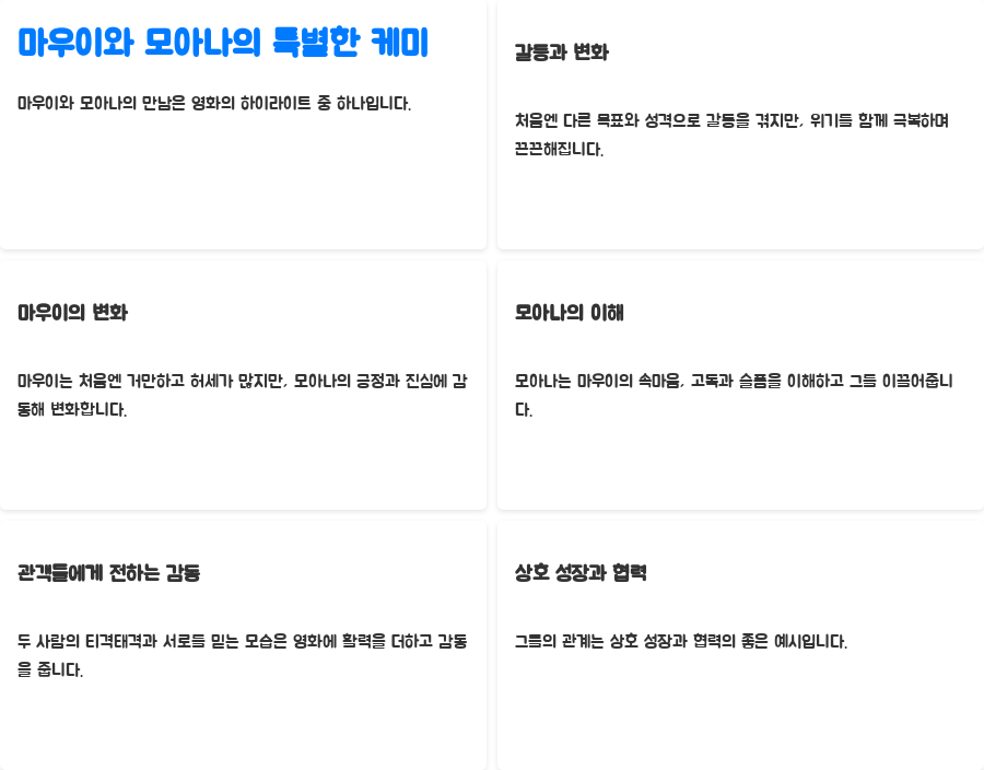 모아나의 성장은 단계별로 진행되며, 그 과정에서 마우이와의 관계는 매우 중요한 역할을 합니다.