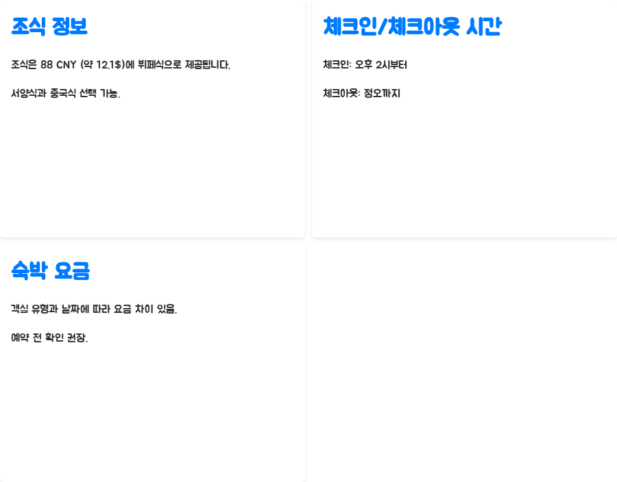 | 조식 가격 | CNY 88 ($12.1) / 1인 |