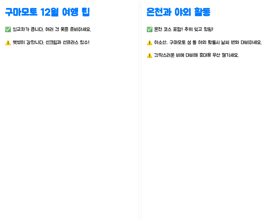 이 글에서는 실제 방문 후기를 바탕으로 구마모토 12월 날씨와 옷차림에 대한 모든 궁금증을 해결해 드립니다.