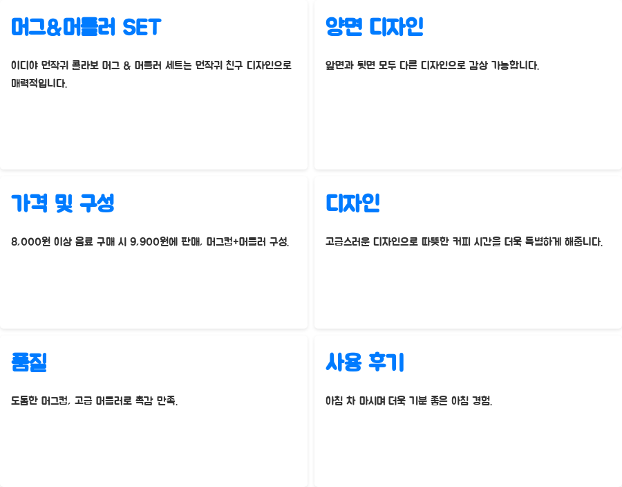 이디야 먼작귀 콜라보의 핵심 아이템 중 하나인 머그 & 머들러 세트는 먼작귀 친구들이 모두 담겨있는 매력적인 디자인을 자랑합니다.