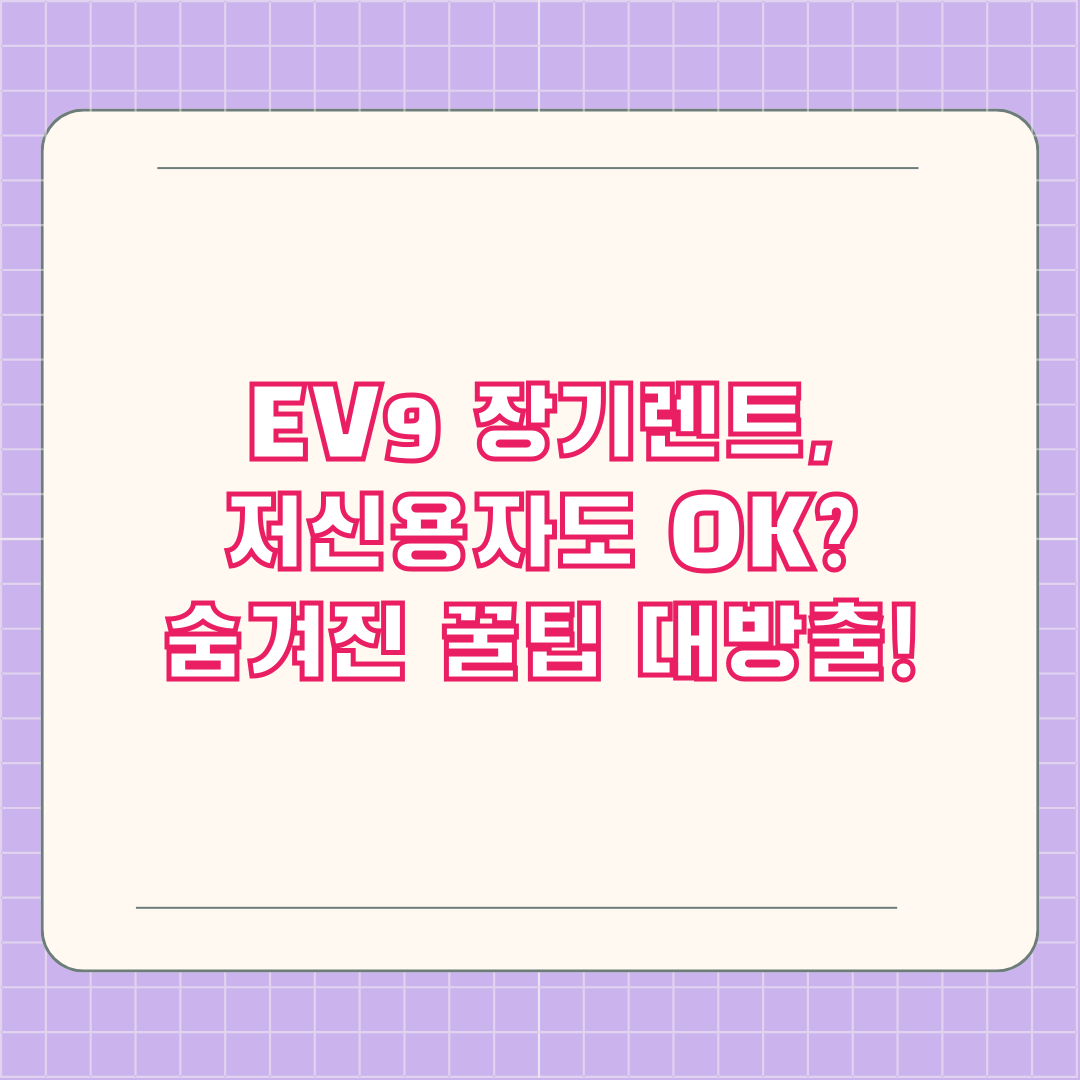 신용등급이 낮아 장기렌트가 어려웠던 분들에게 좋은 소식입니다! 저신용자나 신용불량자도 이용 가능한 특별한 EV9 장기렌트 상품이 있습니다.