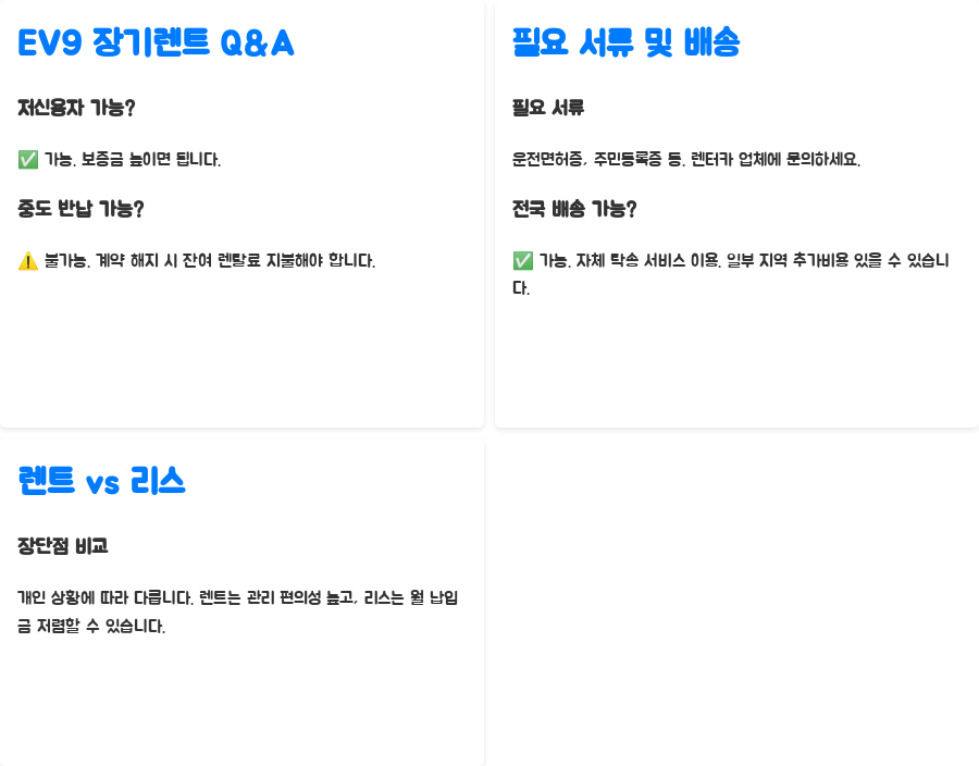 Q3. EV9 장기렌트 계약 시 필요한 서류는 무엇인가요?