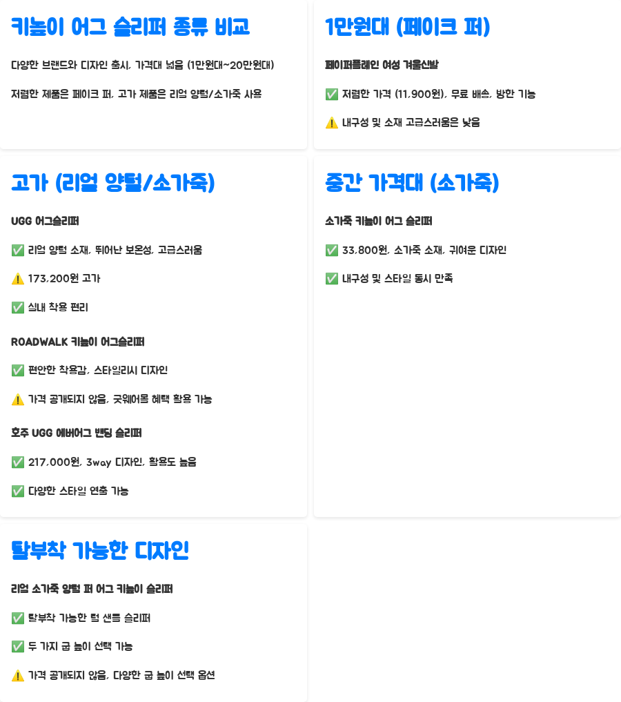 핵심 정리: 키높이 어그 슬리퍼 종류와 특징 비교
