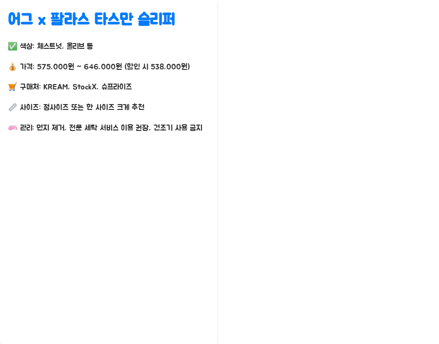 | 모델명 | 어그 x 팔라스 타스만 슬리퍼 |