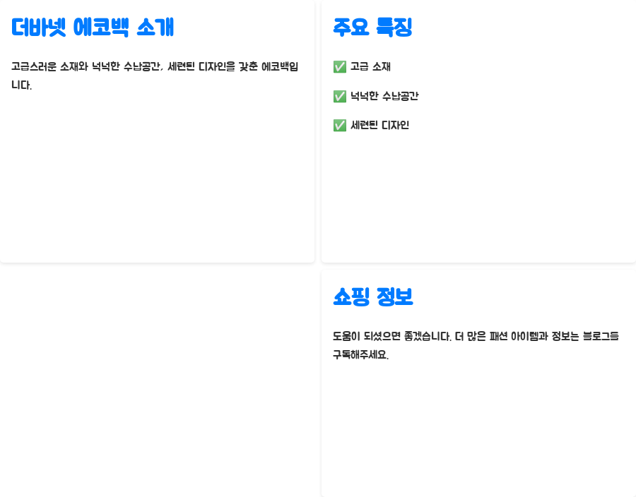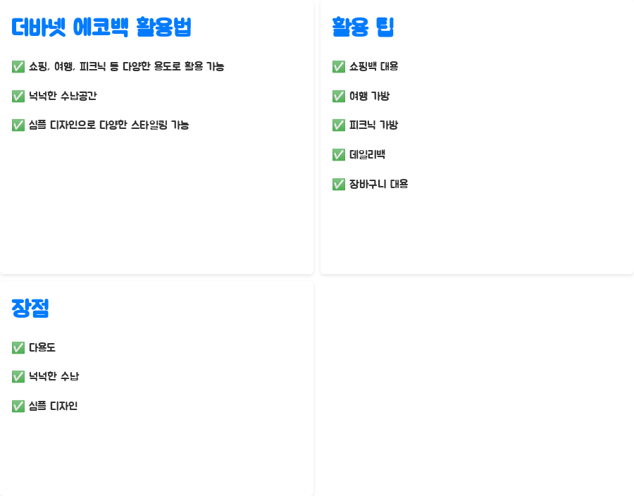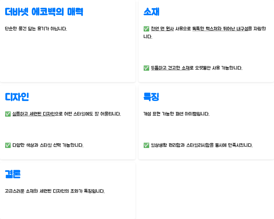 더바넷 에코백은 여러분의 삶에 편리함과 스타일을 동시에 선사할 것입니다.