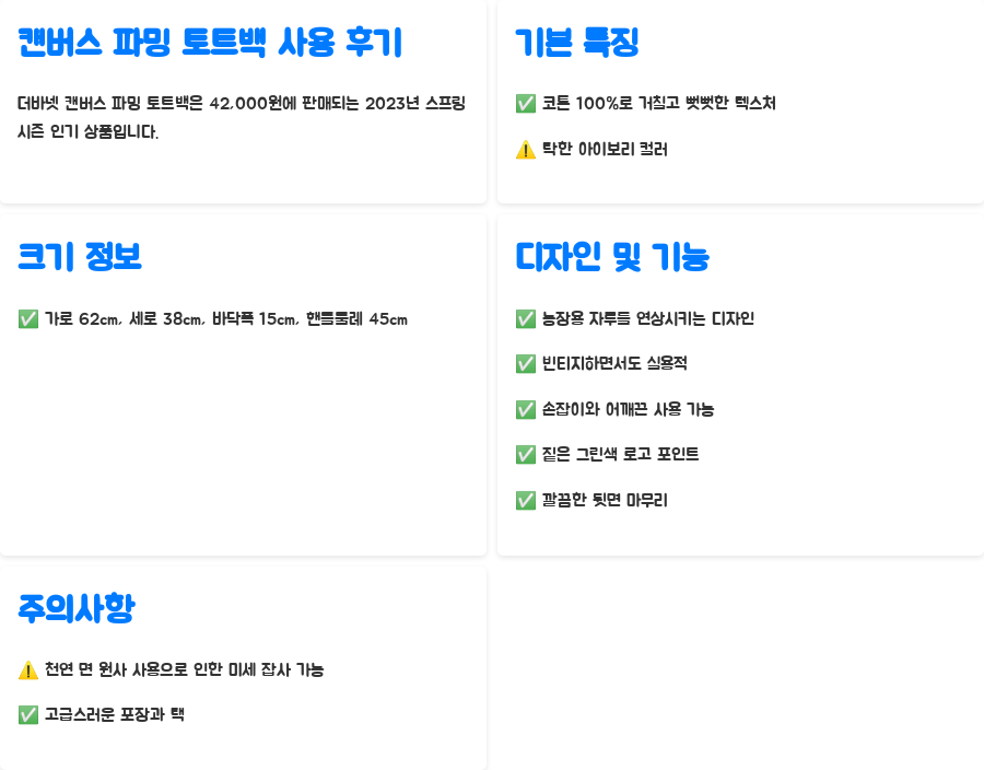 캔버스 파밍 토트백: 실제 사용 후기