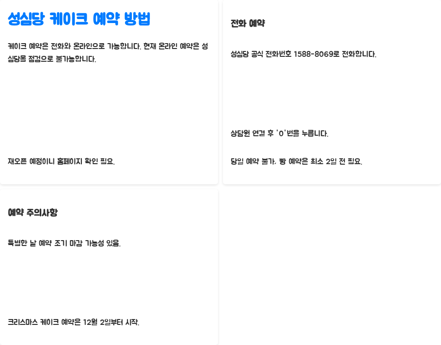Q1. 성심당 케이크 부띠끄 예약은 어떻게 하나요?