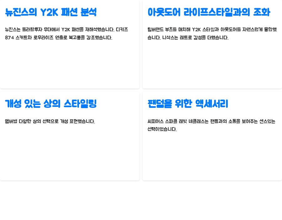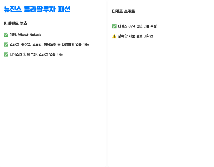 | 추가 정보 | 멤버별 스타일 분석, 팀버랜드 부츠 스타일링 팁 |