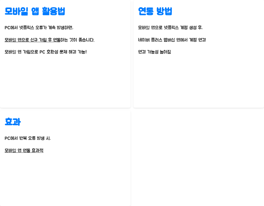 PC에서 계속 오류가 발생하는 경우, 모바일 넷플릭스 앱을 이용하여 신규 가입 후 연동하는 방법을 추천합니다.