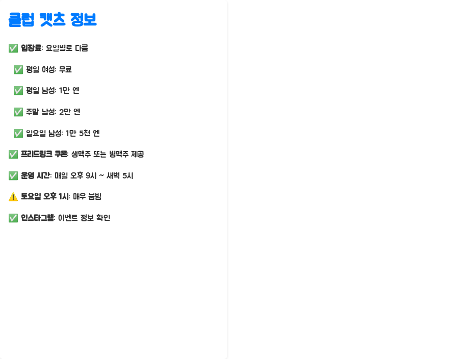 클럽 캣츠 입장료 및 운영 시간 파악하기