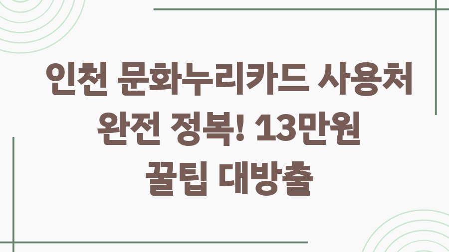 이 글에서는 인천 문화누리카드 사용처를 꼼꼼하게 파헤쳐, 여러분의 알찬 문화생활을 지원하고자 합니다.
