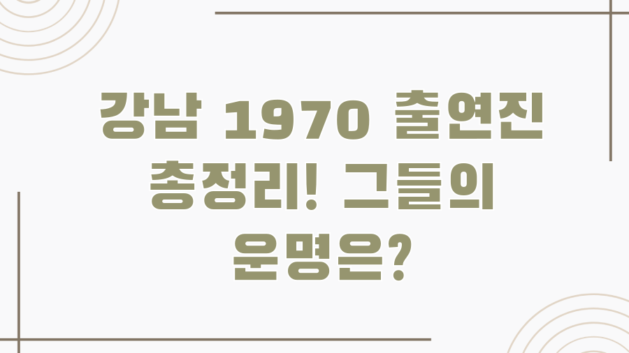 오늘은 그 중심에 섰던 강남 1970 출연진에 대해 심도 있게 파헤쳐 보겠습니다.