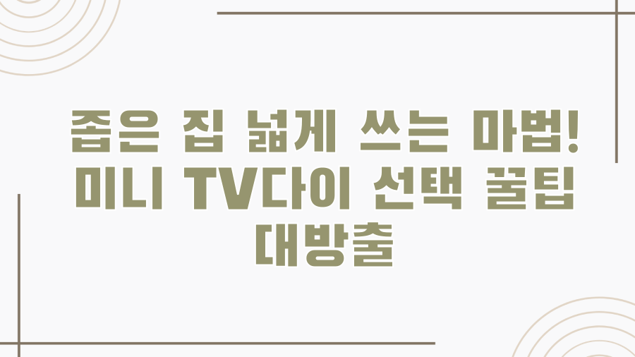 오늘 미니 TV다이에 대해 자세히 알아봤는데요, 어떠셨나요? 좁은 공간을 효율적으로 사용하는 방법, 이제 감이 좀 잡히시나요?