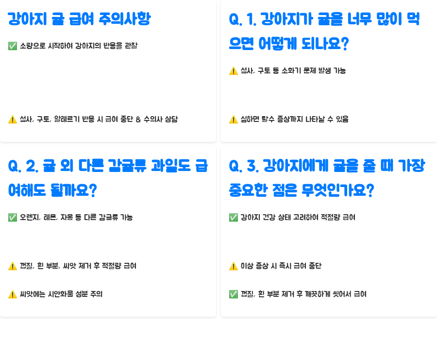 Q. 3. 강아지에게 귤을 줄 때 가장 중요한 점은 무엇인가요?