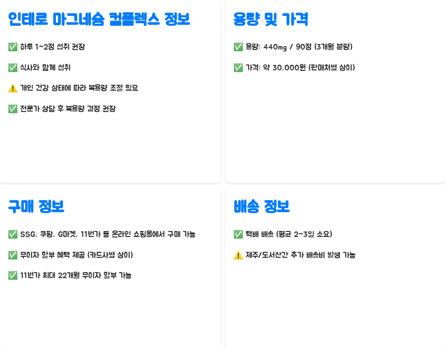 인테로 마그네슘 컴플렉스 복용법 및 구매 정보, 꼼꼼하게 확인하세요!