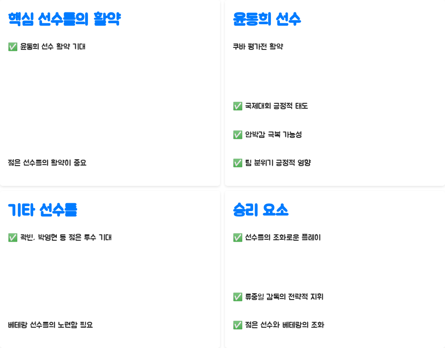 Q. 1. 한국 대표팀의 쿠바 평가전 승리 요인은 무엇이었나요?