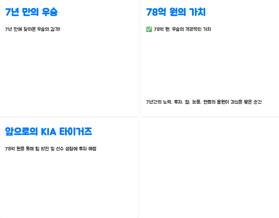 7년 만에 찾아온 우승의 감격, 그 가치를 단순히 돈으로 환산할 수는 없습니다. 하지만 78억이라는 엄청난 금액은 이 우승이 얼마나 소중하고 값진 것이었는지를 보여주는 객관적인 지표라고 할 수 있죠.